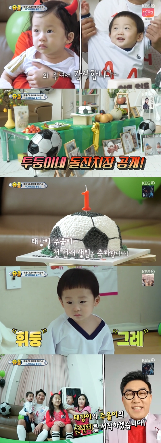 '슈돌' 전 축구 국가대표 이천수의 자녀 태강이와 주율이가 첫 돌을 맞았다.