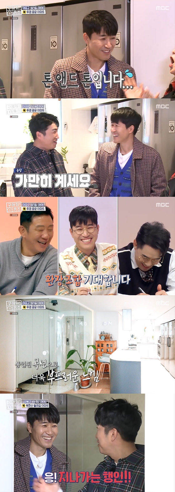 복팀의 두번째 매물은 북한산 둘레길의 '북.바.너(북한산은 바로 너) 아파트'였다. 김종민은 이 매물에서도 '행잉 슬라이딩 도어'라는 용어를 알아듣지 못했다. 장동민은 멈칫한 김종민에 "지나가는 행인"이라고 설명해주며 웃음을 안겼다. 조희선은 방의 활용도나 가구 배치 아이디어를 잔뜩 던지며 김종민의 부진을 만회했다.
