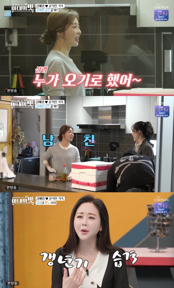 23일 오후 방송된 TV조선 예능 프로그램 '세상 어디에도 없는, 아내의 맛'에는 김예령이 남자친구를 초대하는 장면이 담겼다.