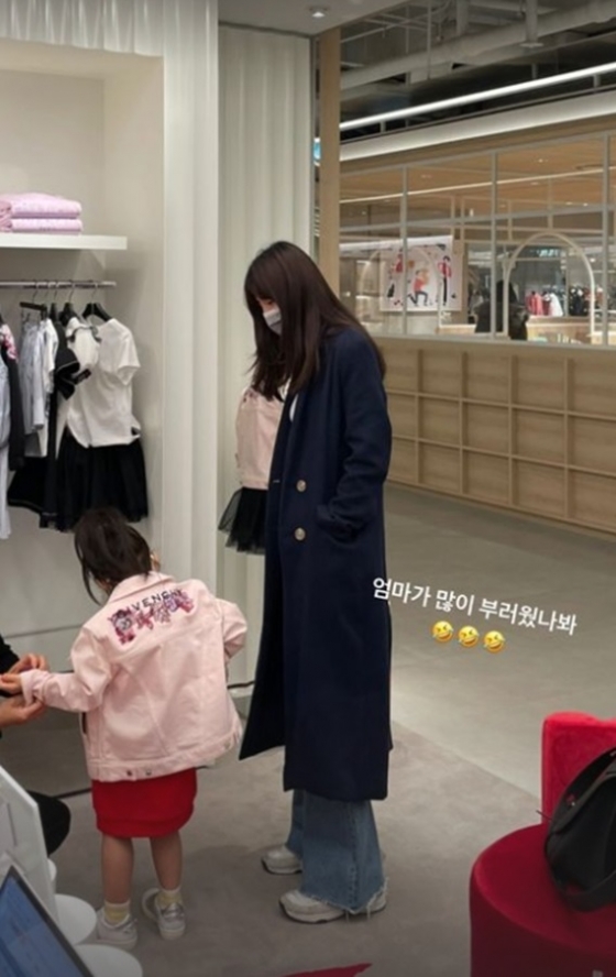김성은은 24일 자신의 인스타그램 스토리에 딸과 함께 한 명품관에서 쇼핑하는 사진을 게재했다.