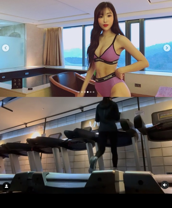 영상 속에는 러닝머신 위를 걷고 있는 이세영의 뒷모습이 담겨 있다. 늘씬하게 뻗은몸매가 시선을 사로잡는다.