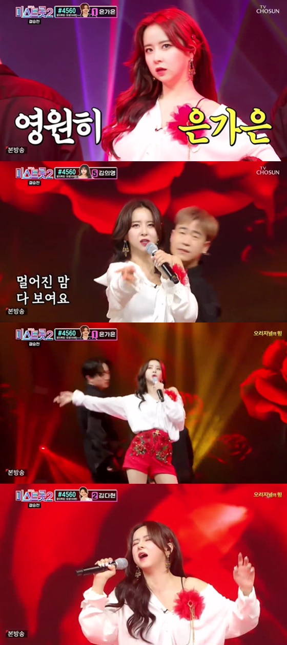 은가은은 25일 방송된 TV조선 '미스트롯2'의 결승 1라운드 신곡 미션에서 첫 순서로 무대에 올랐다.