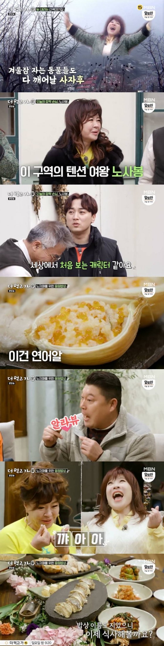 노사연의 언니 노사봉이 방송에 합류, 임지호를 도와 보조로 식사를 준비했다. 노사봉은 등장부터 특유의 장난꾸러기 매력과 한치도 쉼 없는 현란한 입담을 뽐내며 모두를 폭소케 했다. 황제성은 "세상에서 처음 보는 캐릭터 같다"며 웃음을 터트렸다.