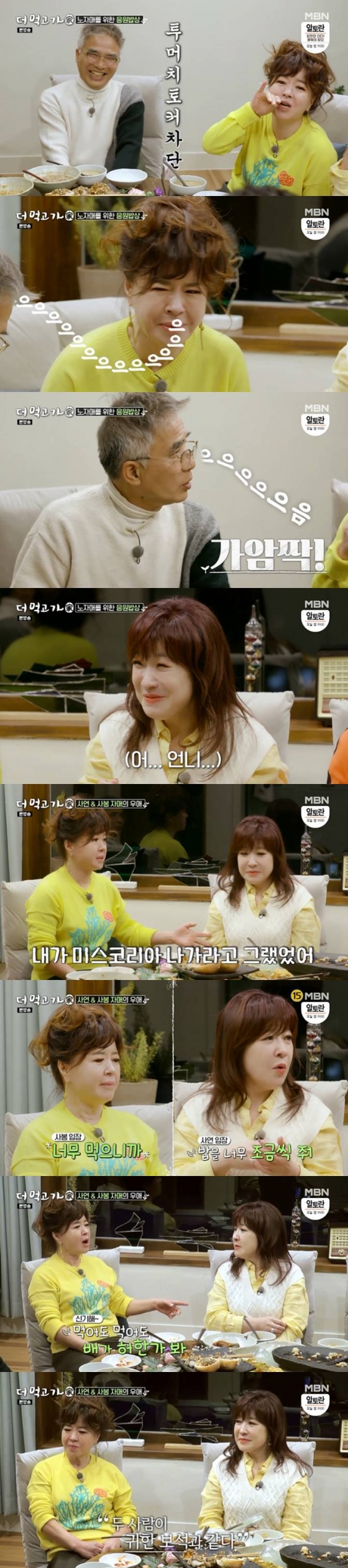 '더 먹고 가' 가수 노사연과 언니 노사봉이 애틋한 자매애를 뽐내며 든든한 먹방을 선보였다.
