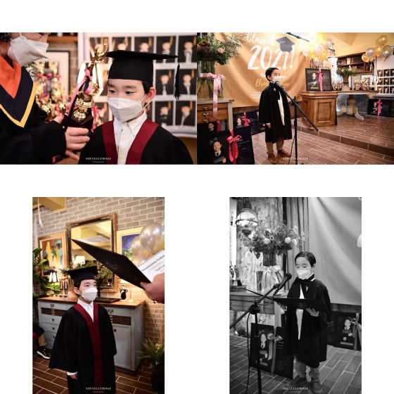 공개된 사진 속에는 아들 이다을 군이 졸업장을 받으며 서 있다. 의젓하게 마이크 앞에서 연설을 하는 듯한 모습이 눈길을 끈다.