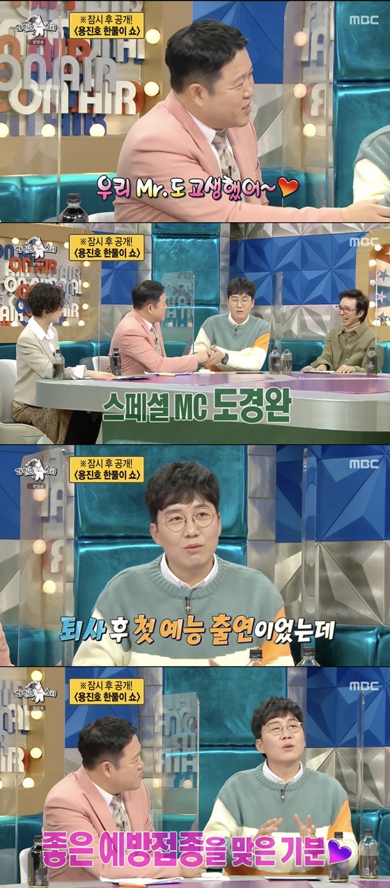 도경완은 '라디오스타' 첫 출연이었지만, 여전한 입담과 깔끔한 진행 실력을 선보였다. 특히 김구라는 "우리 Mr. 도 너무 고생했어"라며 소감을 물었다. 도경완은 "회사 그만두고 이렇게 연예인들과 이야기 하는 예능을 처음 해봤다. 좋은 예방 접종을 맞은 것 같다. 다음에는 더 잘할 수 있지 않을까"라고 답했다.