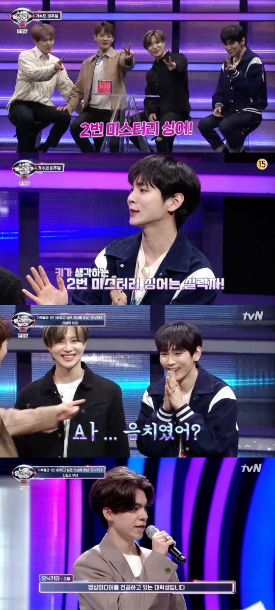 5일 오후 방송된 tvN 음악 예능프로그램 '너의 목소리가 들려 8'에는 샤이니 완전체가 출연해 음치를 찾았다.