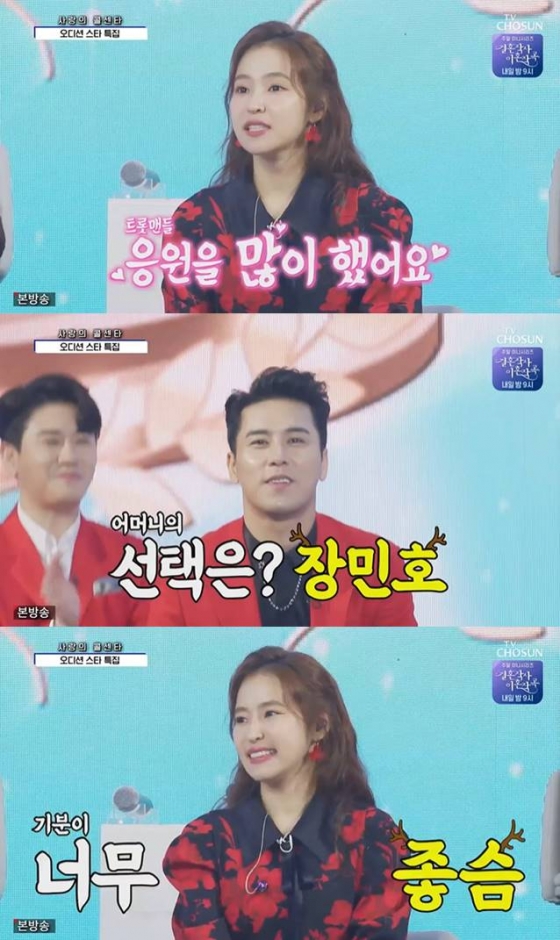 홍자는 '미스터트롯'을 보며 남일 같지 않았다며 "응원을 진짜 많이 했다. 투표도 했다. 엄마가 투표하는 것도 도와줬다"며 누구를 투표했는지 묻자 "장민호 오빠"라고 말했다.