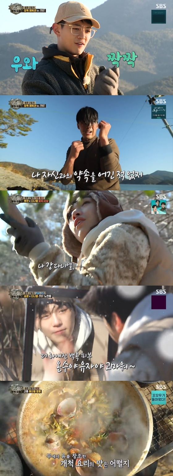 장혁과 강다니엘은 이후 어젯밤 만들어둔 노천탕에서 30시간만의 온수 세안을 만끽하며 행복해했다. 송훈은 개척 스타일로 '굴 짬뽕' 요리에 돌입했다. 무에서 유를 창조한 봄동 불 짬뽕과 으깬 돼지감자의 조합에 개척자들은 감탄을 금치 못했다. 이어 갑각류 알레르기가 있는 강다니엘만을 위한 채소짬뽕도 공개됐다. 개척자들은 모두 그릇을 긁어먹으며 감탄사를 터뜨렸다.