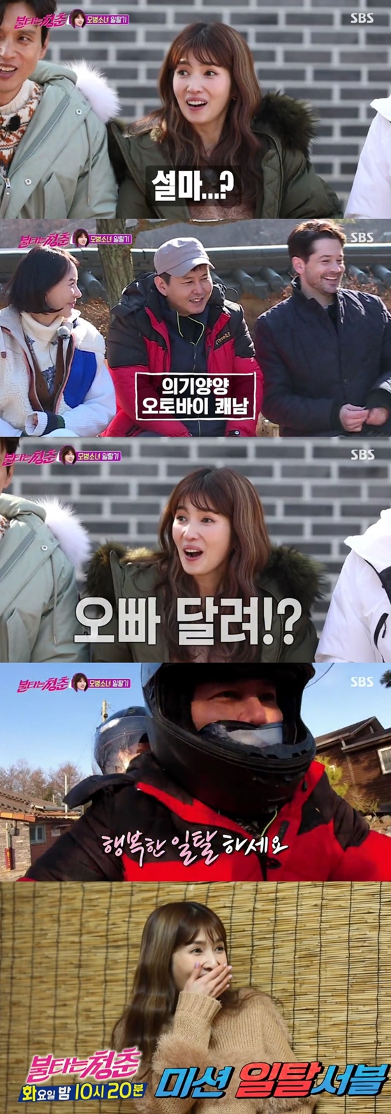 SBS '불타는 청춘'에서 김경란이 생애 최초로 오토바이를 탔다./사진제공=SBS