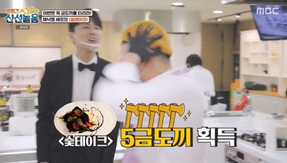 '볼빨간 신선놀음'에서 최강창민이 채낙영 셰프의 '숯테이크'에 금토끼를 선사했다.