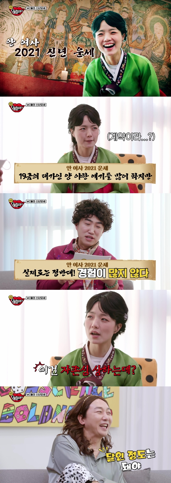 또 "문서 운이 있어서 올해 뭐가 됐든 계약할 팔자"라며 "올해 전반적으로 좋으나 주변인에게 배신당할 수 있으니 돌다리도 두들겨 보고 건너는 습관을 들여야 한다"고 안영미의 올해 운세를 설명했다.
