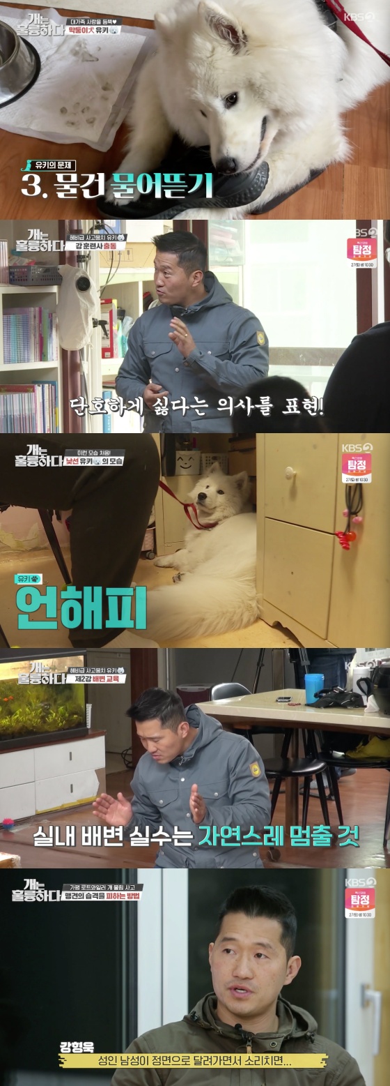 15일 오후 방송된 KBS 2TV 예능 프로그램 '개는 훌륭하다'에는 강형욱이 사모예드 유키의 문제점을 살펴보는 장면이 공개됐다.