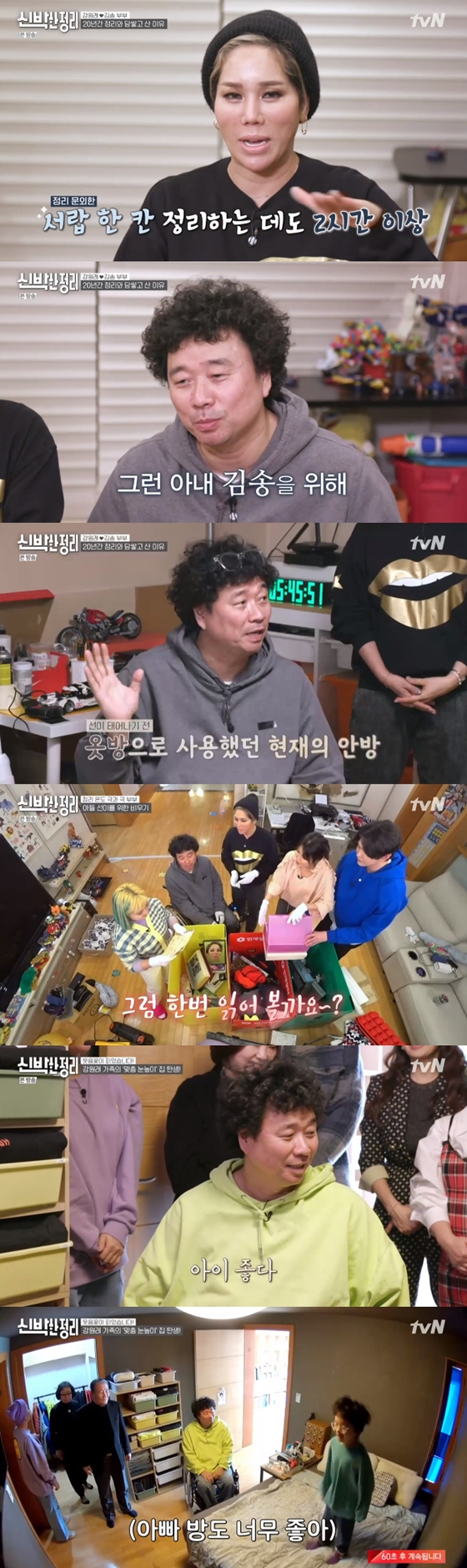15일 오후 방송된 tvN '신박한 정리'에서는 강원래♥김송 부부가 의뢰인으로 출연했다. 두 사람의 아들 선이도 깜짝 등장했다.