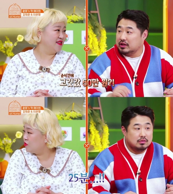 이를 듣던 강재준은 "맞다. 다녀왔다"며 "돈까스 옆에 고깃집에도 같이 가서 먹었는데 순식간에 50만원 정도가 나왔다. 우리 50만원 먹는데 몇 분 걸렸죠?"라고 홍윤화에게 물었다. 홍윤화는 "25분 정도 걸렸다"고 답해 모두를 놀라게 했다는 후문이다. 이날 오후 9시 방송.