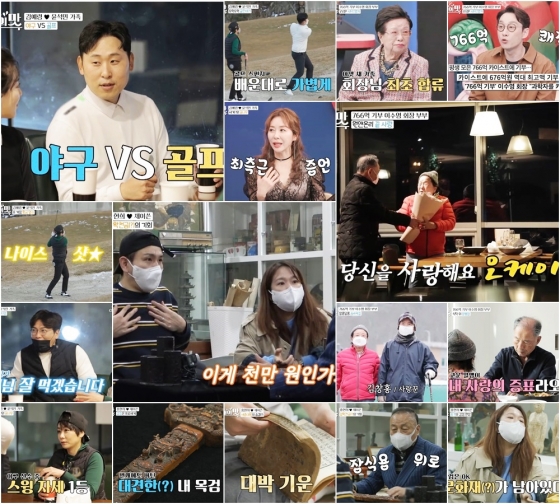 이날 방송에서는 김예령-김수현-윤석민의 '골프 프로의 맛', 홍현희-제이쓴의 '골동품 정리의 맛', 이수영-김창홍의 '팔순 노부부 신혼의 맛'이 그려져 감동과 웃음을 안겼다.