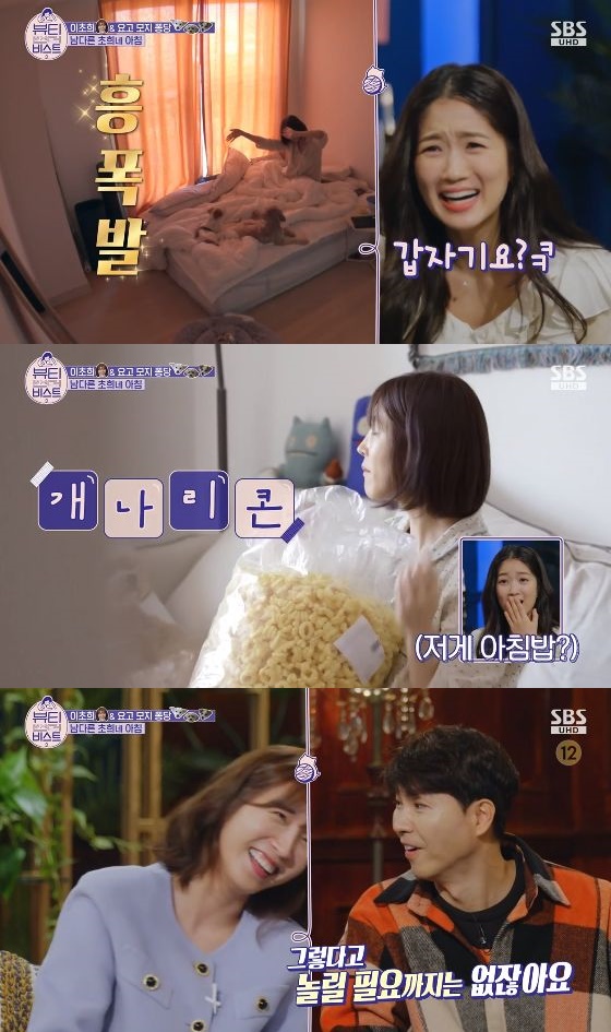 21일 오후 방송된 SBS 예능프로그램 '뷰티 앤 더 비스트'에서는 배우 이초희의 아침 일상이 소개됐다.