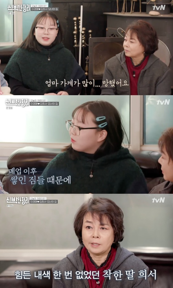 이경애 딸 희서가 '신박한 정리'에서 사업이 망한 후 마음이 복잡해진 이경애를 걱정했다.
