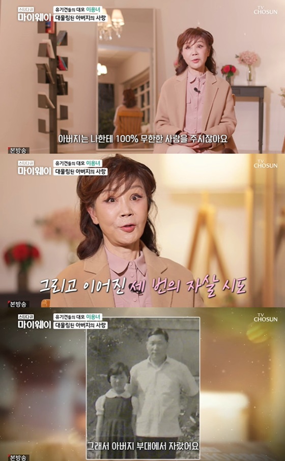 이용녀는 20년 전 아버지가 돌아가시고 세 차례 극단적 시도를 하기도 했다고 털어놨다. 그는 "아버지가 내 차에서 돌아가셨다. 임종도 나만 봤다. 그런 여러 가지 이유도 있고, 내가 아버지와 친했다"고 전했다.