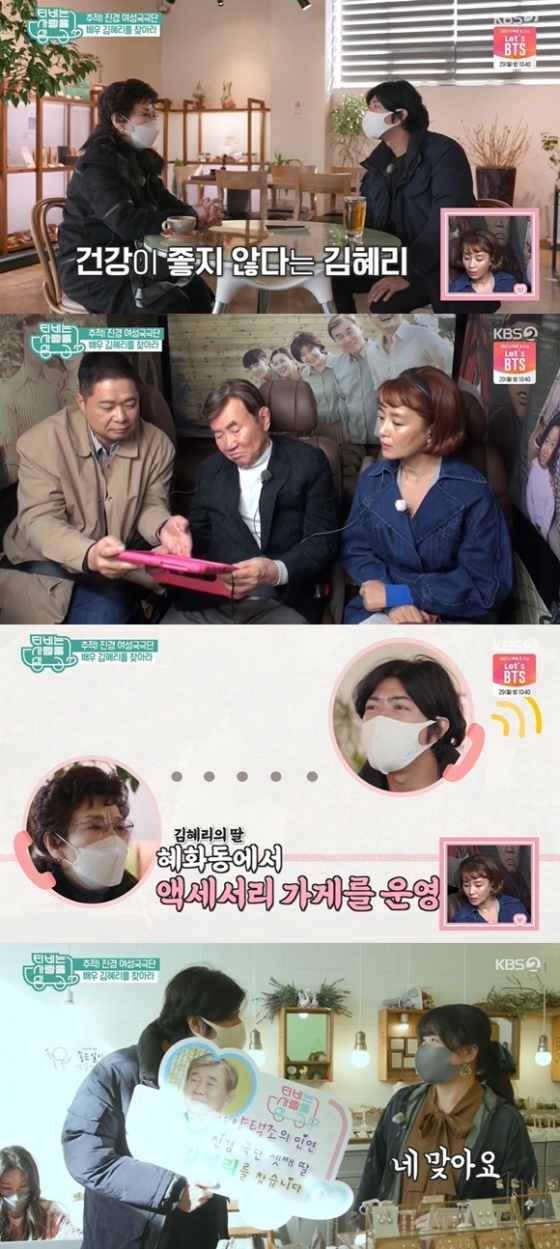 이후 제작진은 당시 진경 극단에서 함께 활동했던 배우 이미자를 찾았다. 이미자는 "김혜리 언니와 왕래를 했지만 코로나 이후로 통 만나지 못 했다. 전화도 잘 안 받고, 지금 몸이 좀 안 좋대요"라며 김혜리의 근황을 전했다. 이어 "딸이 현재 대학로에서 액세서리 가게를 한다고 하더라"며 단서를 제시했다.