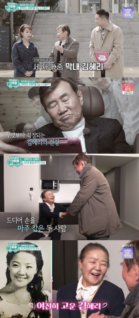 김혜리와 마주한 양택조는 "22살 때 김혜리를 이렇게 보니까 얼마나 가슴이 두근 거렸겠어"라며 당시 수줍음에 고백하지 못했던 일을 기억했고 김혜리는 "나도 그랬다"며 이제서야 숨겨둔 마음을 고백했다. 양택조는 "진작 말하지"라며 엇갈린 인연에 안타까워하기도 하며 22살 소년으로 돌아가 행복한 시간을 보냈다.