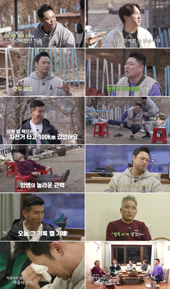 점심상으로 임지호표 얼갈이배추 칼국수가 완성됐다. 끊임없는 면치기로 한 그릇을 ‘순삭’한 양치승은 “허리디스크를 치료하고자 운동을 시작하며 트레이너가 됐다. 승승장구하던 중 체육관을 맡겼던 동생이 이중장부를 쓰면서 전 지점이 망했다”며 롤러코스터 인생사를 고백했다. 또 그는 “운동에만 전념하던 시절, 배우 성훈이 ‘나 혼자 산다’ 출연을 제안해 인생의 터닝 포인트를 맞았다”며, 어려웠던 시절 성훈과 쌓은 뜨거운 우정 일화를 전했다.