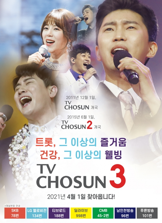 TV CHOSUN이 트롯x웰빙 버라이어티 채널 'TV CHOSUN3'를 4월 1일 출범한다.