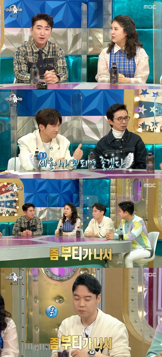 강유미는 유세윤에게 설렌 적이 있다고 밝혔다. 강유미는 "세윤오빠한테 설렌 적이 있다. '사랑의 카운슬러'라는 코너를 같이 했었다"고 말했다. 이를 들은 유세윤은 "그러기엔 복장도 희극인 체육 대회 바지를 입고 그랬었다"고 해 웃음을 자아냈다. 강유미는 "아이디어 회의를 하다가 안 풀릴 때면 바람 쐬러 가자고 했다. 외제 차 끌고, 뚜껑을 딱 열어주면 '욕심난다' 이런 느낌이 있었다"고 했다. 스캔들도 있었다는 김국진의 말에 유세윤은 "스캔들 이후에 환호성이 달라졌다. 아니라고 해도 진짜라고 믿는 분들이 많았다. 믿고 싶기도 하나 했었다"고 설명했다.