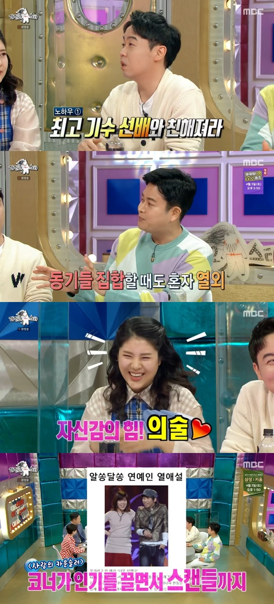 장동민은 선배들이 정해준 군기 반장이었다. 장동민은 "선배들이 통상적으로 1년 동안 본다. '쟤가 적합하겠다'고 해서 제가 됐다. 위에서 집합을 하라고 하니까 했다. 동기들한테 세 시간 집합했다고 하고 코너를 짜라고 했다"고 했다. 뿐만 아니라 훈훈한 미담도 공개됐다. 장동민은 동기들에게 열린 지갑이었다고. 그는 "'개그콘서트', '폭소클럽', '쇼 행운열차'까지 다 했었다. 그러니까 출연료도 나았다"며 "출연료를 낮췄다. 출연료를 낮추는 대신 이 친구들(동기들) 꼭 좀 써달라고 했다"고 했다.