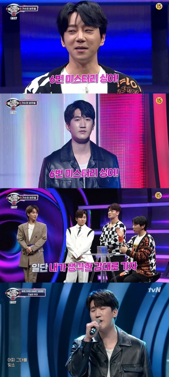 이윽고 음악이 흘러나왔고 6번 미스터리 싱어는 황치열의 '어찌 잊으오'를 저음의 허스키한 음성으로 완벽하게 소화했다.