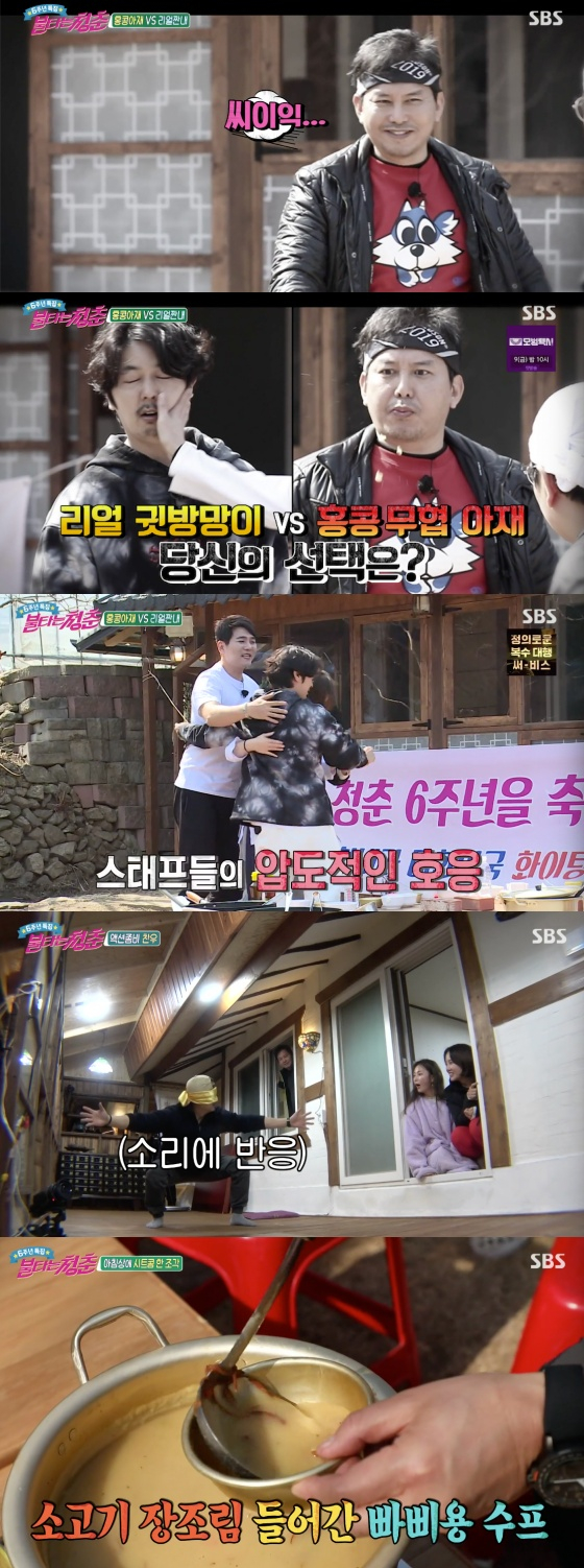 6일 오후 방송된 SBS 예능프로그램 '불타는 청춘'은 6주년을 맞이해 김찬우, 윤기원과 함께했다.