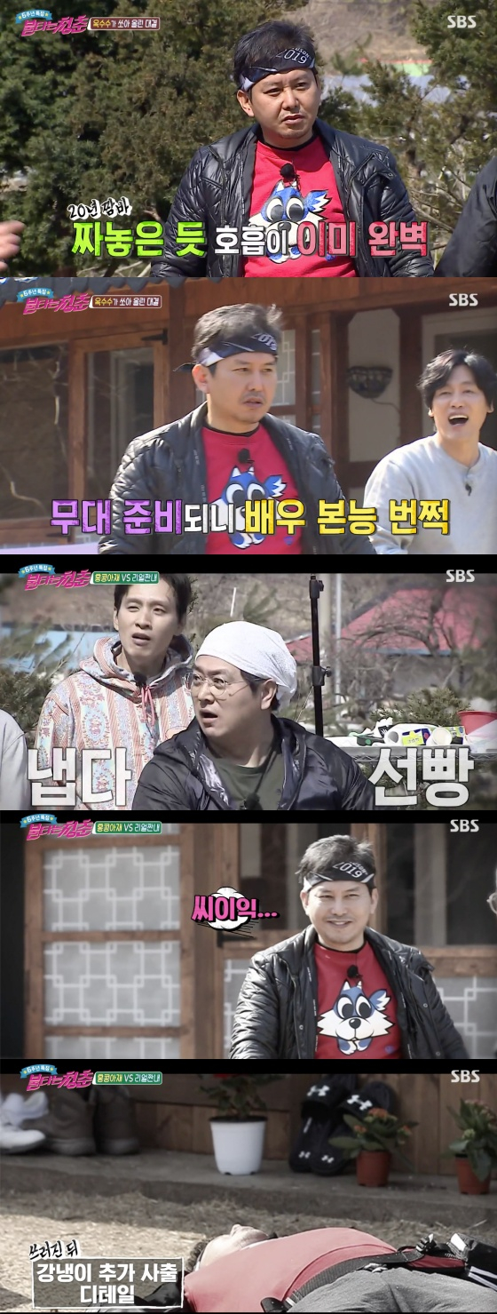 윤기원은 김찬우와 합을 맞췄다. 김찬우는 윤기원에게 "어느 쪽으로 돌 거냐"라고 물었고, 윤기원이 카메라 반대편을 말하자 김찬우는 "그러면 얼굴이 안 나오지 않냐. 내가 반대쪽으로 가겠다"며 진지한 모습을 보였다.