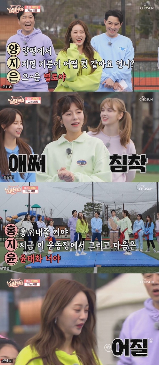 '내딸하자'에서 홍지은이 양지은을 상대로 지는 씨름에서 1초 만에 승리를 차지했다.