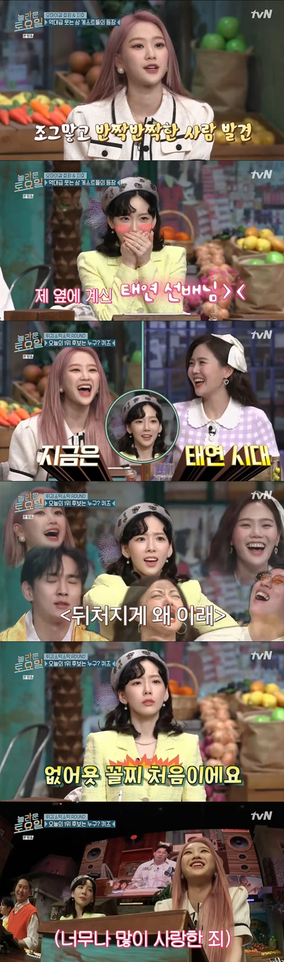 '놀토' 소녀시대 태연이 자신의 찐팬 오마이걸 지호 앞에서 첫 꼴찌를 기록했다.