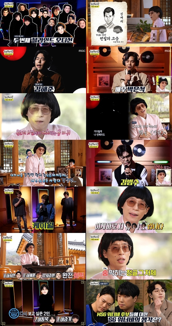 '놀면 뭐하니?' 유야호(유野好)는 역시 달랐다. 남성 보컬 그룹 'MSG워너비' 결성 프로젝트로 2차 블라인드 오디션을 연 가운데 '가창력 끝판왕' 김범수와 '고막남친' 케이윌부터 대세 배우 박은석과 대세 개그맨 김해준까지 줄줄이 탈락의 고배를 마시는 특급 반전이 펼쳐졌다.