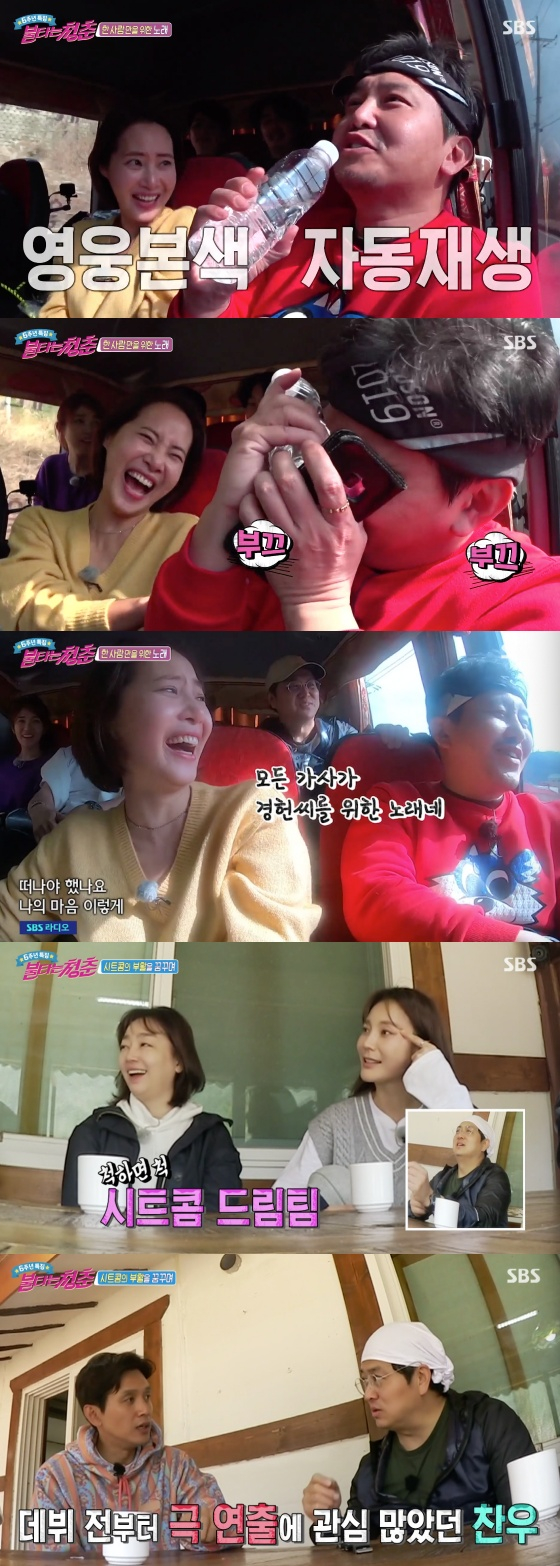 13일 오후 방송된 SBS 예능프로그램 '불타는 청춘'에는 김찬우가 새로 합류해 청춘들이 봄소풍을 떠나는 장면이 담겼다.