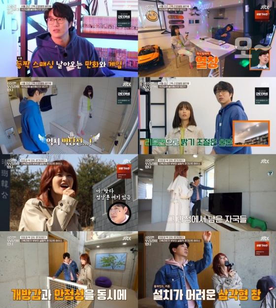다음으로 테라스와 외부 현관부터 온통 콘크리트인 양주 '우리집'은 내부 천장과 벽이 콘크리트로 카페나 갤러리에 온 듯한 느낌을 풍겼다. 모든 방의 사이즈가 동일하다는 특징이 있는 양주 '우리집'에는 서쪽 하늘 뷰 계단실과 삼각형 통창이 있는 딸의 방, 딸과 아들의 방 사이를 잇는 커넥팅룸, 탁 트인 다락까지 눈에 띄는 공간들이 있어 홈투어의 재미를 높였다.