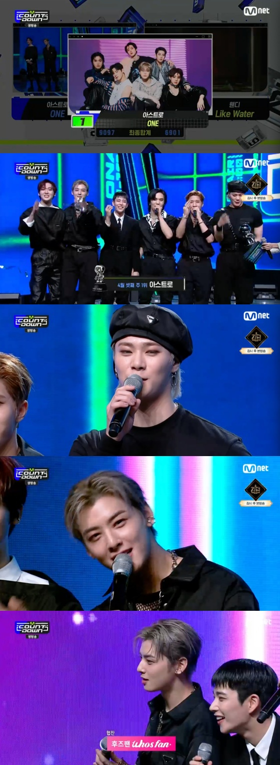 그룹 아스트로가 '엠 카운트다운'에서 웬디를 제치고 1위에 올랐다.