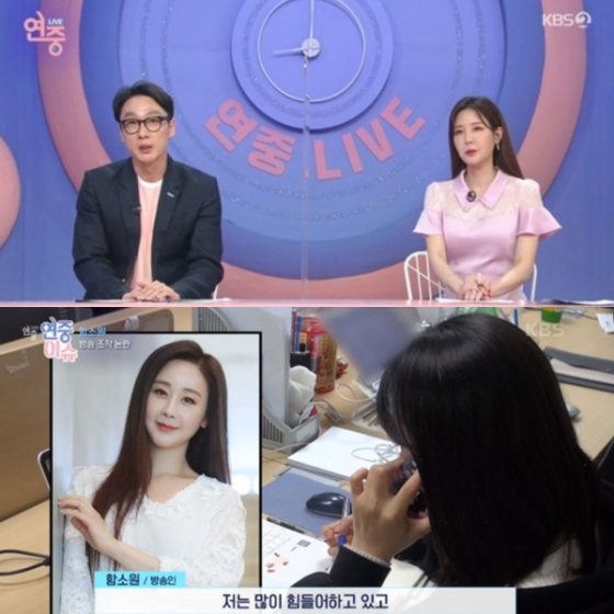 이날 방송에서 함소원은 '연중 라이브' 제작진과 전화 통화를 통해 "많이 힘들어하고 있고 사과문 올린 것과 똑같이 잘못했다고 생각하고 있다"며 "잘못 인정하고 반성하고 노력하려고 한다. 지지해주신 분들에게 좋게 웃어드리려고 노력하고 있고 한 가정의 엄마로서도 노력하고 있다"라고 말했다.
