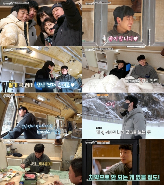 또한 김동욱은 이날 성동일이 준비한 황태 국수 먹방에 낮잠을 즐기는 등 힐링 가득한 시간을 만끽했다. 모두가 잠든 사이 눈 내리는 창밖을 바라보며 제대로 '눈멍'에 빠져들기도. 함께 눈을 보고 싶은 마음에 멤버들을 깨울까 말까 진지하게 고민하는 김동욱의 모습은 웃음을 자아냈다. 이어 김동욱은 "느낌이 (손님이 아니라) 원래 있었던 사람 같다"라고 해맑게 웃으며 '바퀴 달린 집'에 완벽 적응한 모습을 보였다.