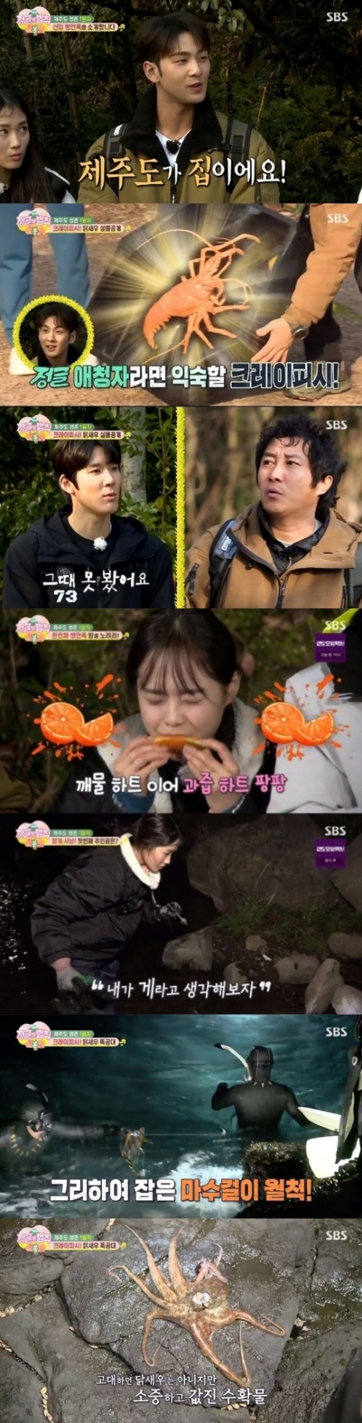 김병만, 박군, 박태환이 '닭새우 특공대'로 나서 밤바다 사냥에 나섰고, 지상렬, 츄, 김혜윤, 백호가 참게 잡기에 투입됐다. 이 중 김혜윤은 혼자서 참게 2마리를 잡았고, 박군은 첫 수확물로 문어 잡기에 성공했다.