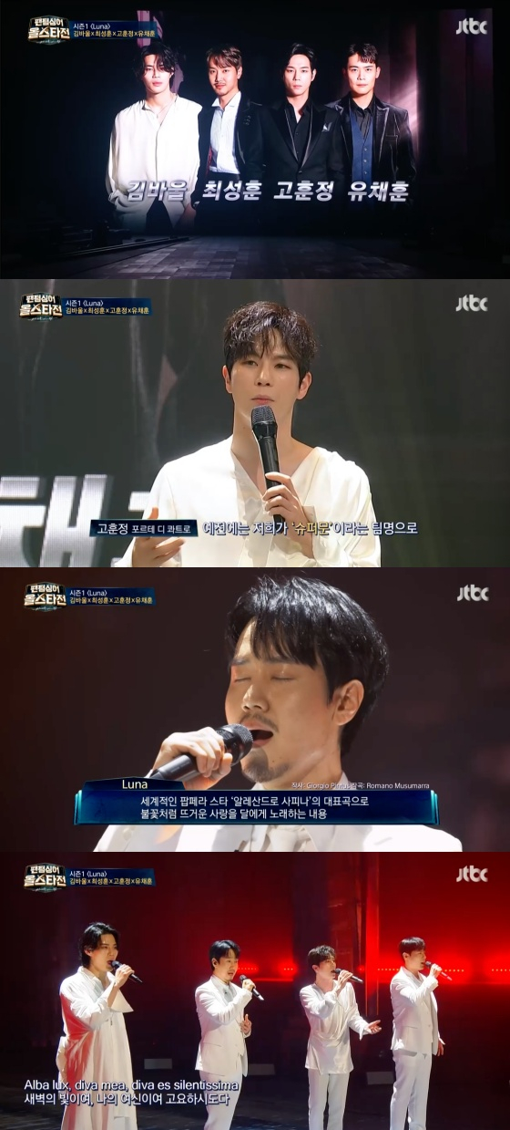 가수 김바울, 유채훈, 최성훈, 고훈정으로 구성된 아폴로가 '팬텀싱어 올스타전'에서 'Luna' 무대를 재해석했다.