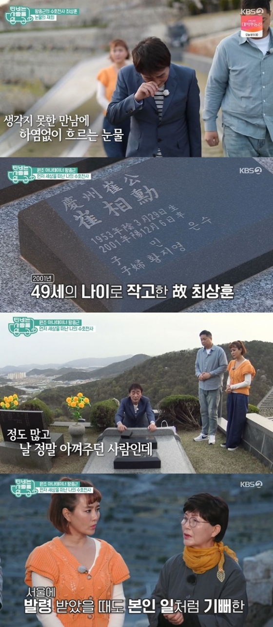 차에서 내린 왕종근은 왈칵 눈물을 터트렸는데. 왕종근이 도착한 곳은 경남 김해의 한 묘지로 최상훈 씨는 향년 49세의 나이로 생을 마감했다. 왕종근은 "너무 늦게 와서 미안하다"며 계속해서 눈물을 흘렸다.