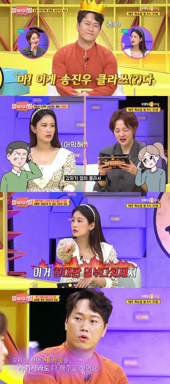 지난 22일 방송된 KBS Joy 예능 프로그램 '썰바이벌'에서는 스페셜 게스트 배우 송진우와 함께 토크쇼를 펼쳤다.