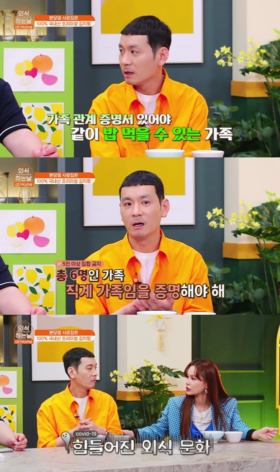 정성호은 고개를 끄덕이며 "가족관계증명서가 있어야 외식이 가능하다. 저희 집이 6명이니까"라고 답했다. 코로나19 예방 및 확산 차단을 위한 사회적 거리 두기에 따라 5인 이상 집합 금지 행정 명령을 지켜야 하기 때문이다. 5인 이상 직계 가족의 경우 이를 증명할 수 있는 관련 증빙 서류가 필요하다. 정성호, 경맑음 부부는 슬하에 두 아들과 두 딸을 두고 있다.