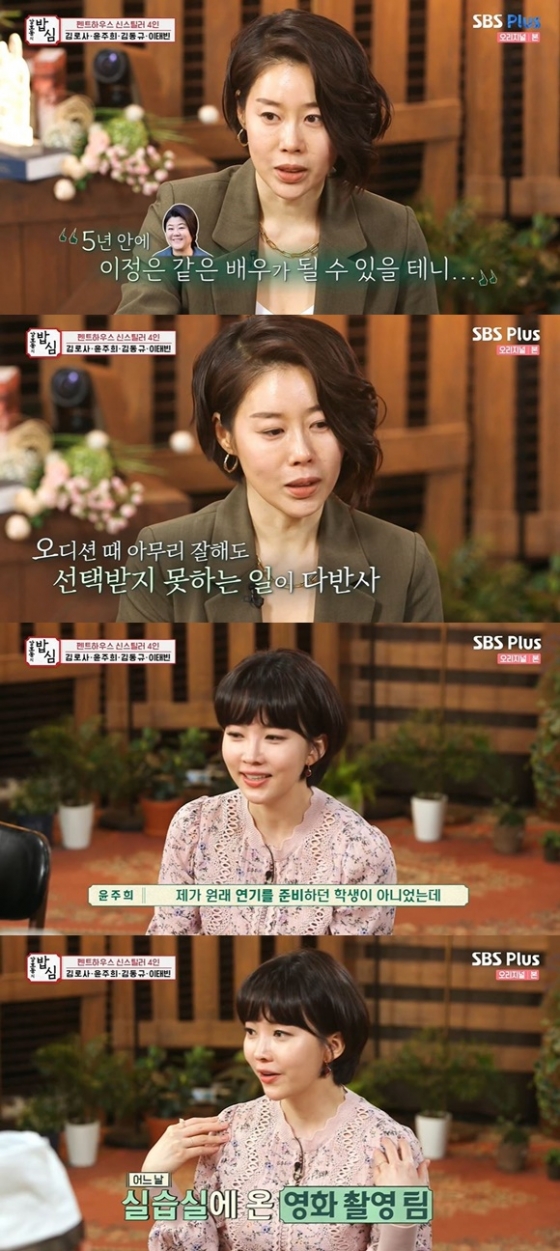윤주희는 신인 시절 상처된 말에 대해 "오디션을 3~400번은 족히 보러 다녔는데 어떤 감독님이 '넌 한계가 있을 것 같아. 배우로 잘 안 될 것 같아'라고 하셔서 앞에서는 눈물을 참았다. 그 말에 좀 원동력이 된 것 같기도 하고. 색깔이 분명하지 않다, 개성이 없다는 이유로 데뷔하기까지 시간이 오래 걸렸다"며 2% 부족하다는 말을 많이 들었던 데뷔 전 일화를 공개해 안타까움을 자아내기도 했다.