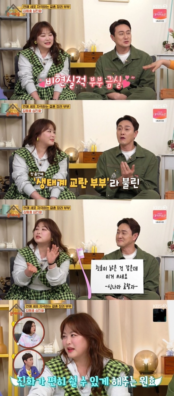 27일 오후 방송된 KBS 2TV 예능프로그램 '옥탑방의 문제아들'에서는 김원효-심진화 부부가 출연했다.