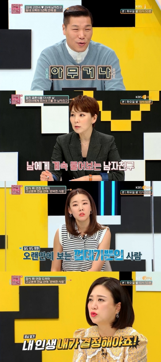 고민녀에게 모든 선택권을 주고 책임까지 전가하는 남자친구의 행동에 MC들이 황당해했다.