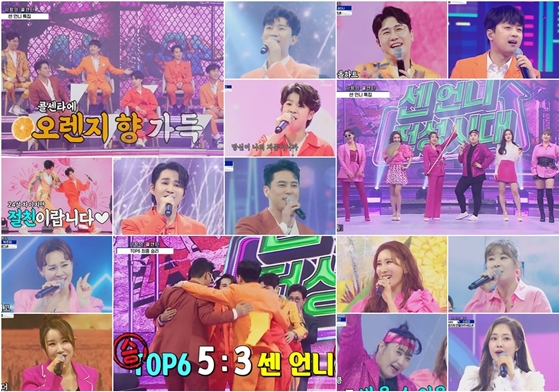 이날 '사랑의 콜센타'에서는 TOP6와 언니6가 화끈한 한판 승부를 펼치는 '센언니 특집'을 통해 웃음부터 감성, 재미, 열정까지 총천연색 매력을 표출했다.