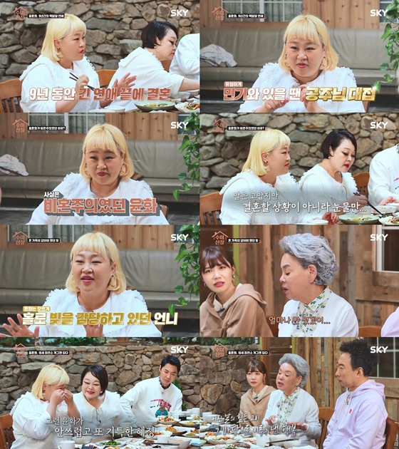 하지만 홍윤화의 사정을 알게 된 김민기는 오히려 "내가 도와줄게. 같이 갚자"라고 말했다. 결국 홍윤화는 삶에서 뭔가를 하나씩 포기하게 만들던 빚을 청산하고 나서 바로 김민기와 날을 잡고 결혼에 골인했다. 감동한 산장 식구들은 "두 사람 다 대견하고 대단하다"며 입을 모았다.